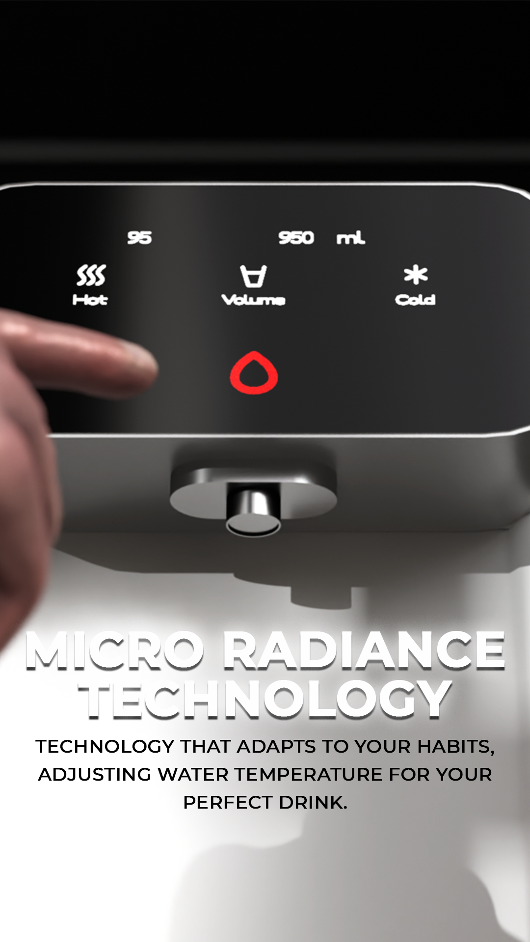 Micro Radiance Technology is an intelligent system built into the Nereos purifier that learns your daily water-drinking habits and adapts automatically. For example, if you always make a 95°C coffee at 7 AM, the purifier will pre-heat in advance to deliver hot water instantly at that time. If you like a cold drink in the evening, it can adjust its cooling cycle accordingly. All of this happens in the background, so you barely notice—except that you get your water at the perfect temperature every time, with minimal waiting. Over a few weeks, the system becomes “smarter” about anticipating your preferences, saving energy and time, and turning your purifier into a personalized, user-friendly appliance that fits seamlessly into your routine.