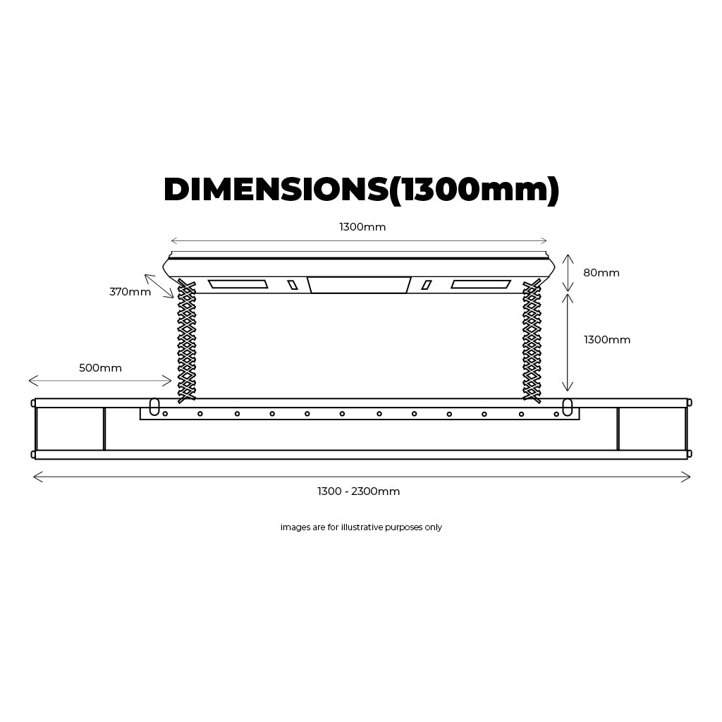 - 1300mm to 2300mm x 560mm x 250mm(drop down pole)