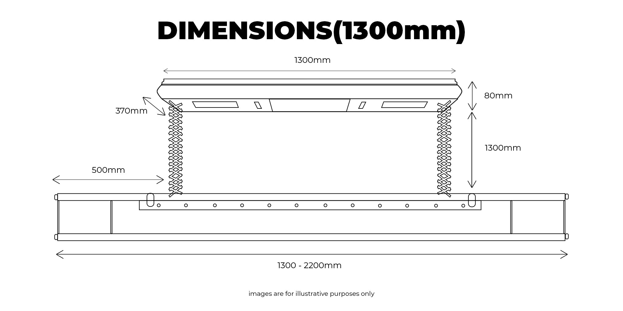 - 1300mm x 370mm x 80mm(Length x width x height)